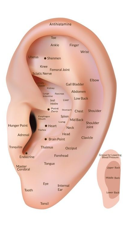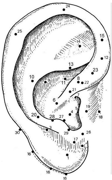 De ooracupunctuur dankt zijn populariteit aan de soms spectaculaire en vaak snelle resultaten. Een gemakkelijke tool voor de plaatsbepaling van de punten is wanneer men een liggende foetus met het hoofd naar beneden denkbeeldig plaatst in de oorschelp.